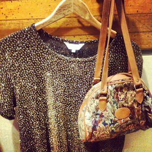 Gold JLW label top - black with gold specks. I'm not sure what JLW stands for, I thought maybe john lewis women or something? but then john lewis is a department store. No idea, but if you do know let me know! This was £2 at my local charity shop, and the floral bag which I am IN LOVE with was £3.50 at the same charity shop. I was thinking of wearing this top with my black american apparel disco pants and some black flatforms for new year? As I'm going to a house party I wanna look dressed up but my main feel is for comfort! There's nothing worse than heels on carpet!